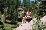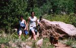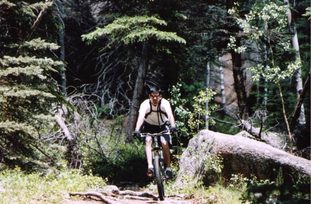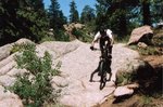 Josh gives his Mountain Bike a workoutThe whole crew made a little excursion up to Rampart Reservoir today. Josh and Kristina took their bikes in the back of the Comanche while Ronda and I took Abby in her Jeep. The reservoir is located in the Rampart Range and is accessible by either driving up Rampart Range Rd which is rather long and twisty, or , by going up to Woodland Park and coming in the back way.