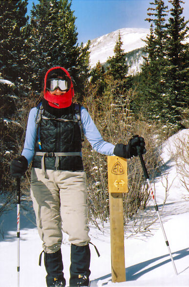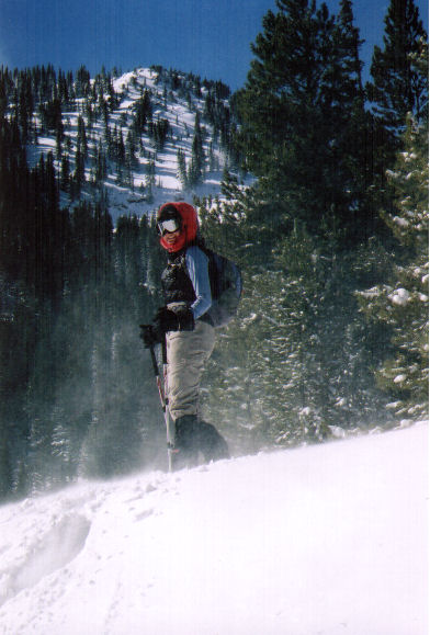 Ronda and I made weekend getaway up to Idaho Springs and stayed at a resort that has natural hot springs. On Saturday morning we headed off to give my snowshoes their maiden voyage. The winds had been pretty nasty the previous day and were not much improved in the morning. It took a while to convince myself that I really wanted to do this…but eventually we geared up and headed into the blowing snow. The first half mile or so was pretty miserable but then we got into the forest and it improved considerably. We were not the first ones up the trail so we had a path to follow which helped some. It was really fun stomping over drifts that ranged from two to six foot high.