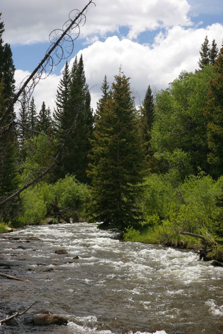 I got out the forest map I had purchased and saw that a 4WD road (906) near the dam on the reservoir went up a little ways and dead-ended at a trailhead. The trail continued along East Coal Creek and looked like it would be about our speed with no major changes in elevation. Hiking along a mountain stream is usually enjoyable and so we loaded up our daypacks, hiking poles, the dog, and motored on over.