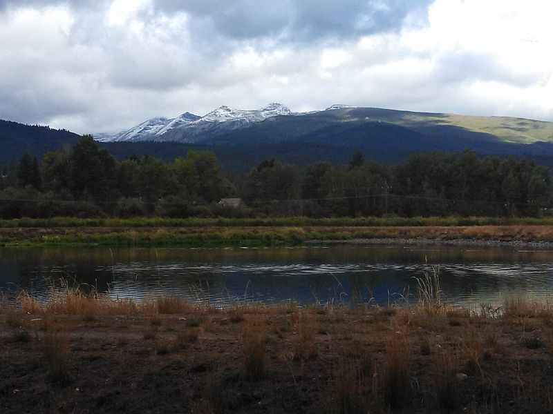 On this trail, I have been blessed to stumble upon a moose quietly grazing in the marsh as I took a resort guest for a walk and had the thrill of watching the ospreys feed on the river and raise their young, including the first flight of the young! The young bucks often are sparring in one of the fields and the ducks of all varieties have come and gone to a neighboring pond. Always when you turn around, right behind you, are the ever changing, but always constant, views of the rugged Bitterroot Mountains and breathtaking glacial canyons with their unique splendor. Currently, they are dressed in a lacey coat of white from the unseasonable first snow storm last night.