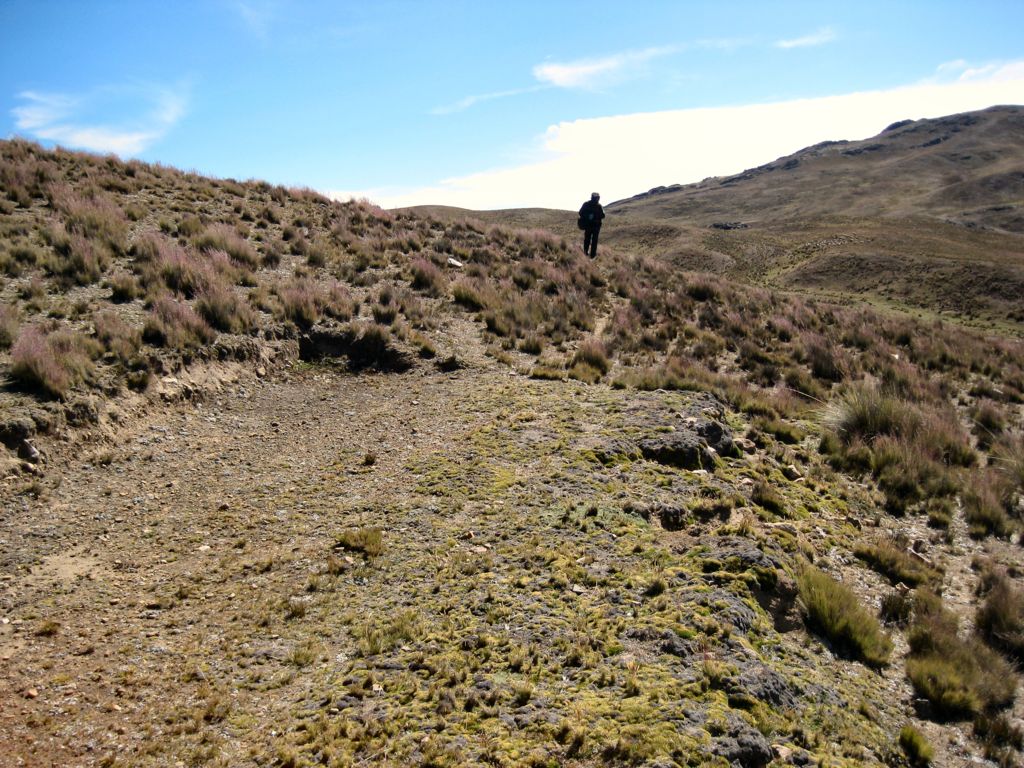 We got out stretching our legs and surveying the situation. I grabbed my GPS and took a “fix”. We were at 14,000 feet in the middle of nowhere. Daniel & Ruben spotted a couple of local shepherds. After discussions, it seemed we were close to Suncallo but need to get “over there” in order to pick up the road again. The terrain was fairly rugged and the Land Cruiser was top-heavy with all our gear & supplies. “Over there” was several miles across, up, and over another peak.