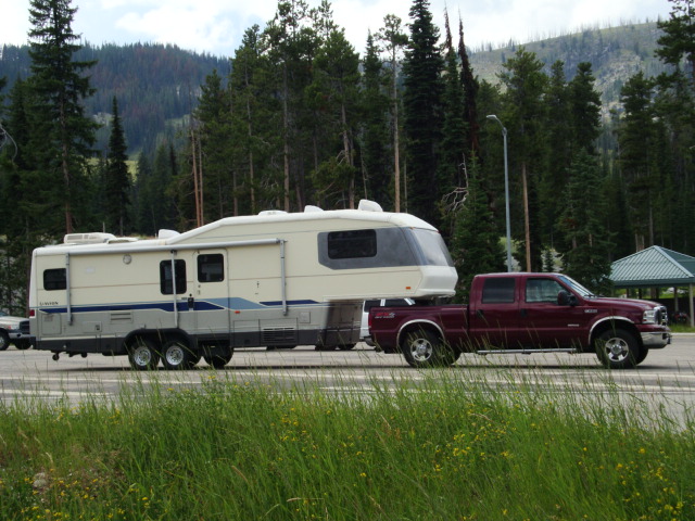 There is a nice rest area and visitors center at the top of the pass. We took a break there to cool off, even though we didn’t really need to, and let Abby out for a walk. We had a nice chat with Chris, who was on duty, gathered some brochures and info from him and headed on down the Montana side of the pass to our destination…Darby, MT.