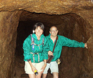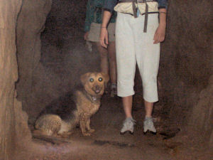 Just a short distance later a side tunnel branches off to the left and getting into it is a bit dicey. We decided to explore this tunnel and managed to get past the tricky entrance. Abby was still faithfully tagging along although we were wondering what she was thinking about her crazy owners.