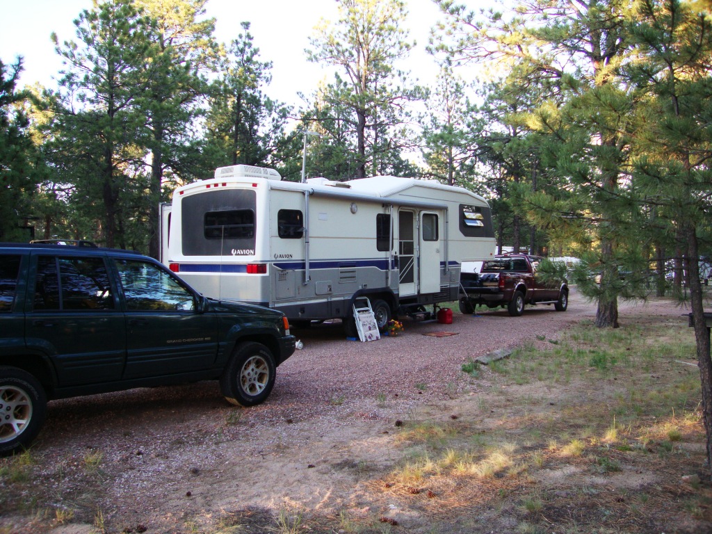 We departed the windswept prairie the morning after my last day at Raytheon. It was a welcome event in many respects. Finishing up the J.O.B. and leaving the campground at Buckley AFB…which had become a bit tedious after three weeks. It is a newer facility (year old) as far as campgrounds go but the constant wind and the repetitive drone of the Blackhawk helicopter got to be wearisome. For some odd reason the pilots would fly around in circles from early evening till 10pm and their orbit brought them right over the campground each time. Some sort of training mission I suppose but not sure of the purpose.