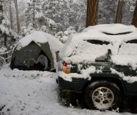 Then it started snowing again. It became apparent that we could not stay up this high. We had taken our old tent which was very roomy but not so waterproof anymore and it was obvious that conditions were not exactly improving. We were not sure where we were going to go but we definitely needed to get out of where we were or be prepared to hunker down and wait it out. And with our stuff already being pretty well soaked that seemed like a bad idea. So we packed it up and managed to drive down out of the mountains even as the winds were picking up again and the road was getting rather difficult to pick out. Thus ended misadventure #2.