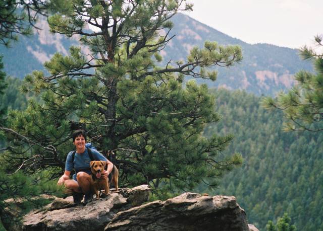 This little effort rapidly became more than we bargained for but nothing that we could not master! Abby was a earning her right to be called “Mountain Dog!”. We finally made it to the top and after hunting around a bit found the trail (woo-hoo). We decided to stop and eat our lunch on a real nice rock outcropping with a view.